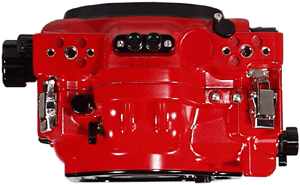 どんな水深でも変わらず半押しの感覚が伝わる軽いタッチのシャッターレバーと電源スイッチがグリップ上部に配置 |