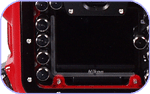 水中で万一パチン錠が開閉されないよう、ガードを装備。上部には背面グリップも兼ねたガードを配置 |