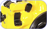 水中で万一パチン錠が開閉されないよう、ガードを装備。上部には背面グリップも兼ねたガードを配置 |