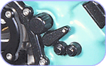 水中で万一パチン錠が開閉されないよう、ガードを装備。上部には背面グリップも兼ねたガードを配置 |
