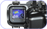 水中が明るいときの液晶の見にくさも考え、フードを深く設計してあります |