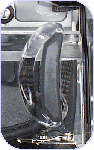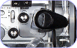 | 水中で万一パチン錠が開閉されないよう、ガードを取付けています | 本格的水中ビデオ派の事を考え、大型の水中ライトを使用できるよう丈夫なベース用のプレートを標準装備しています | 簡易型水中ライト使用派の為にハウジング上部にホットシューを常備しました(重たく、大きい水中ライトには不向きです) |